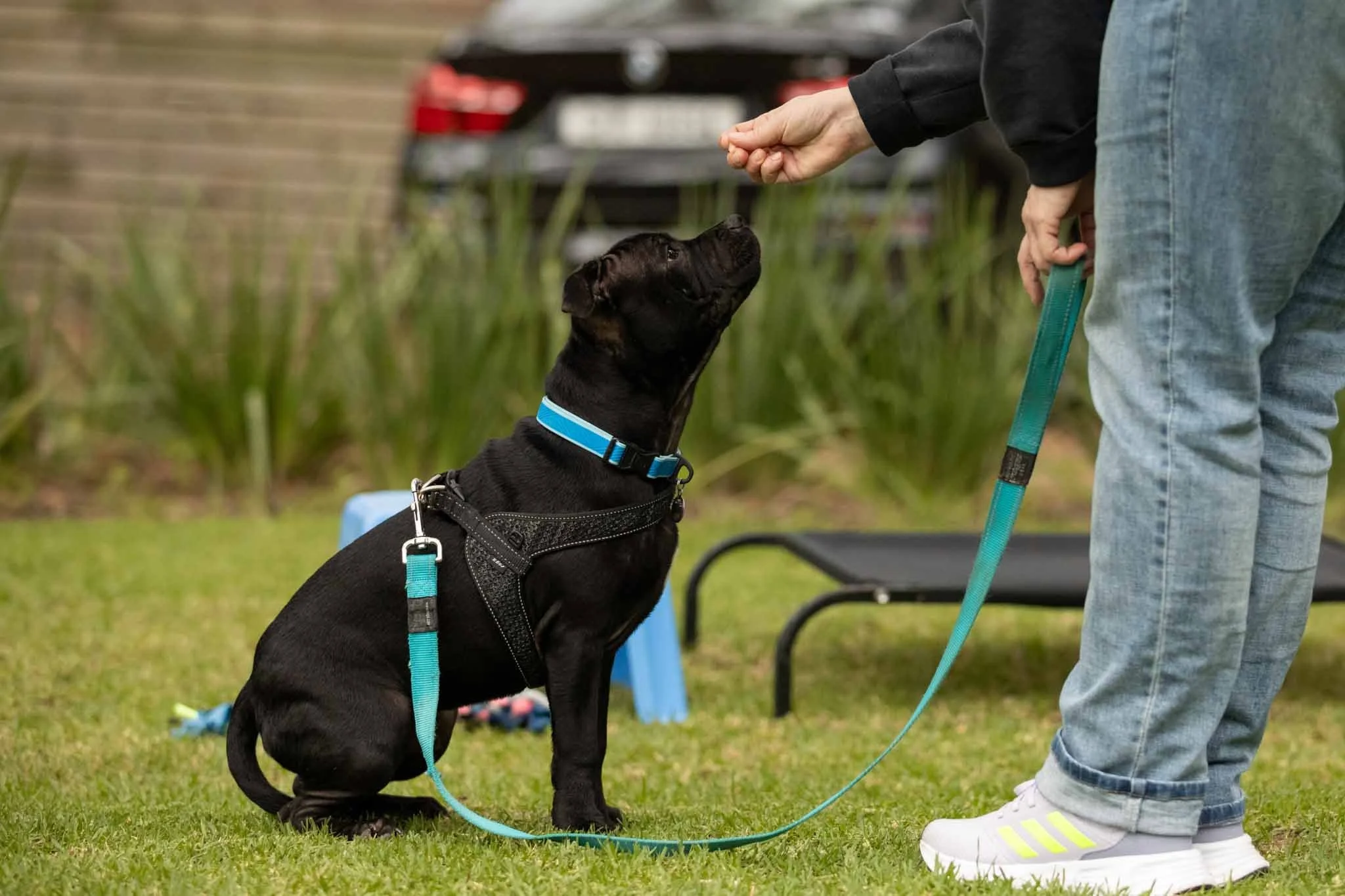 You need to bring with harness and lead, water bowl, treats and a treat pouch. You can also buy treats at the class.